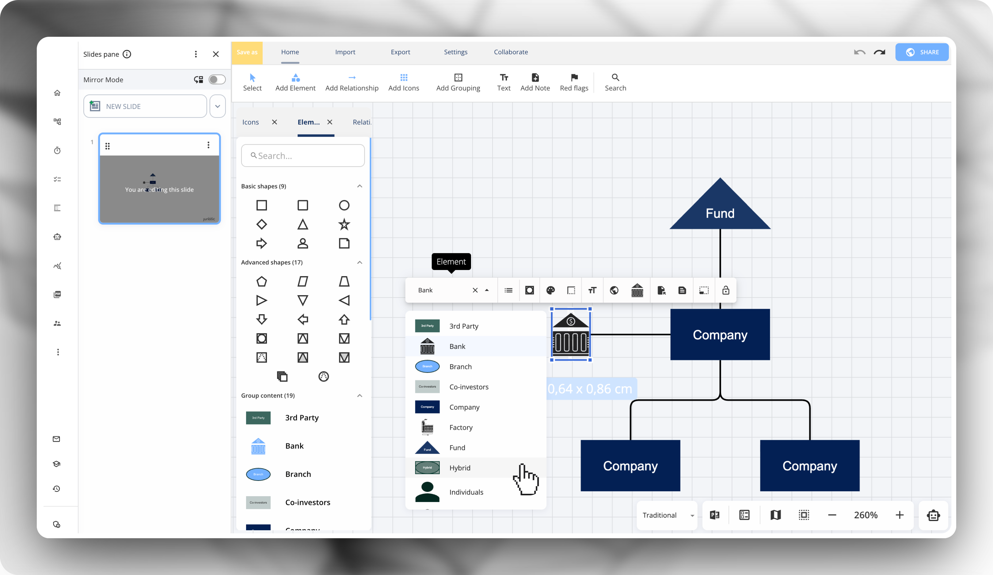 When adding a Standard element, you can now preview its appearance directly in the dropdown before inserting it onto the canvas. This makes it easier to select the correct element, reduces trial-and-error, and helps keep diagrams consistent from the start.
